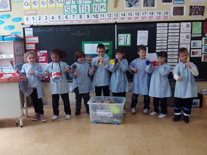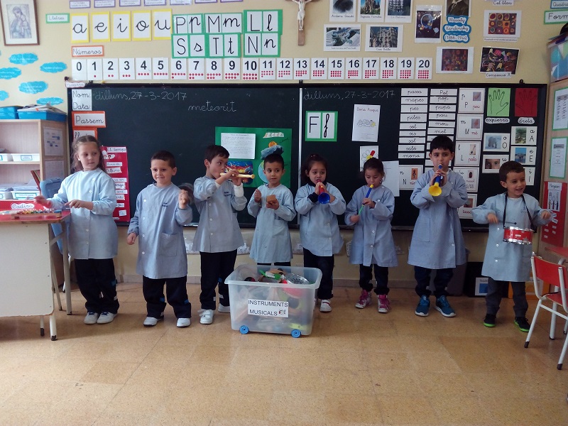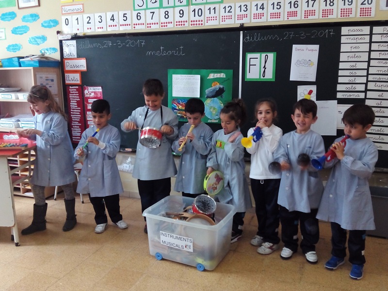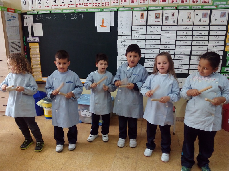 En l’àrea de música fomentem el plaer de la música a través d’audicions i cançons. Aprenem a tocar i conèixer els diferents tipus d’instruments i les seves característiques principals. Memoritzem cançons populars de festes tradicionals celebrades a l’escola.